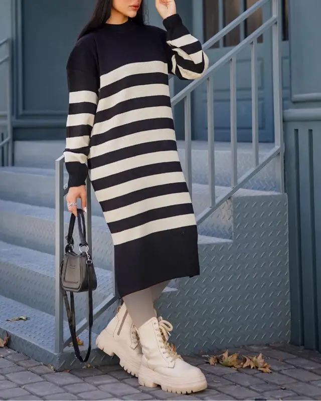 خانه پوشاک زنانه بلوز کفتان بافت راه راه رینگی 7284